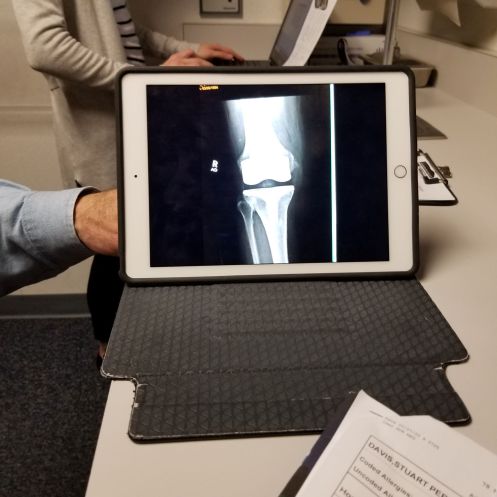 In Stuart’s defense of his difficulties, you should know that 35 years ago he had a fall at work resulting in a torn ACL (the key “anterior cruciate ligament” that stabilizes your knee) in this same knee and had surgery. That, plus arthritis, probably led to his current issues. His knee has not been fully functional in the way it should have been all these years. Later he also had another fall, and a doctor at the time said maybe he would need to get something fixed at some point, but it never bothered Stuart a lot, so we lived with it.