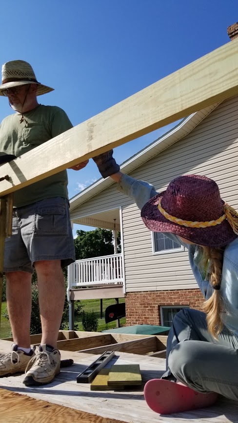 But my husband and I are building a woodshed where I learned a lot and helped enough that I began to enjoy it. I finally knew what tool he wanted or needed next. Like an assistant helping a dentist or in surgery, I would sometimes hand him the tool before he asked. I helped him put up the poles, structural joists, and side supports. It is currently waiting on rafters and roof, but as life happens, other projects have edged in.