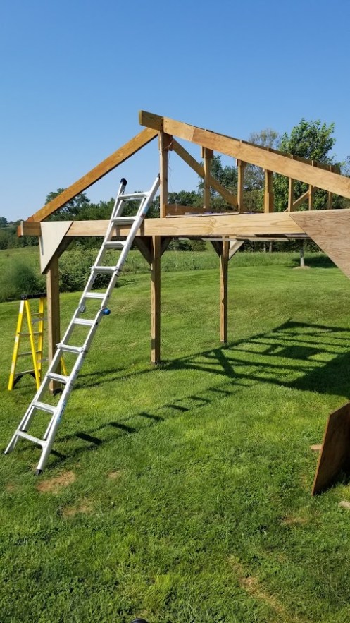 So I’m proud of myself too. Two mid-to-late 60-year-olds building a shed which we hope someone else will also eventually enjoy and use. Oh yeah, we paused for many months on this project after Stuart had his knee replacement surgery in early March. We also had lots of sore muscles, lots of arguments, lots of holding the ladders for each other so we wouldn’t fall.