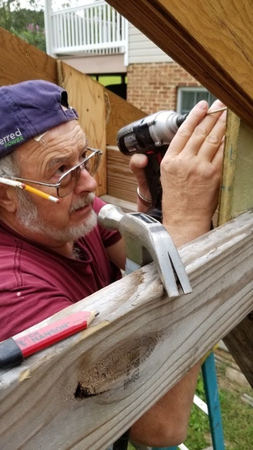 My guy got galvanized into action probably April/May this year after the pandemic brought restrictions. He started in his art studio, retrofitting his desk with additional storage: adding compartments, etc. Today he has just about finished building a platform for his mitre saw, adding casters so he can roll, rather than lift, the saw to wherever he needs it. He’s always been a builder, most notably the 4′ x 7′ easel which provided his livelihood doing art & music performances in schools for over 30 years.