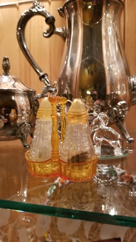Their biggest room was a bedroom/living room combo where Grandpa’s legendary and historic grandfather clock stood in one corner. We loved to help Grandpa wind his clock. There was a china cabinet holding Grandma’s special antique dishes, and two chairs for them including a rocker (which I now have in my bedroom). Grandma Miller (her name was Barbara) would allow me to handle and play with some of the cabinet items including a small yellow plastic salt and pepper shaker in a basket. I loved it and asked her if I could have it when she was gone. She talked about such things often, so it wasn’t like I was anxious for her to die. It was quite unimaginable for me, because they were always there and my parents enjoyed having live-in babysitters, as my mother will still admit.