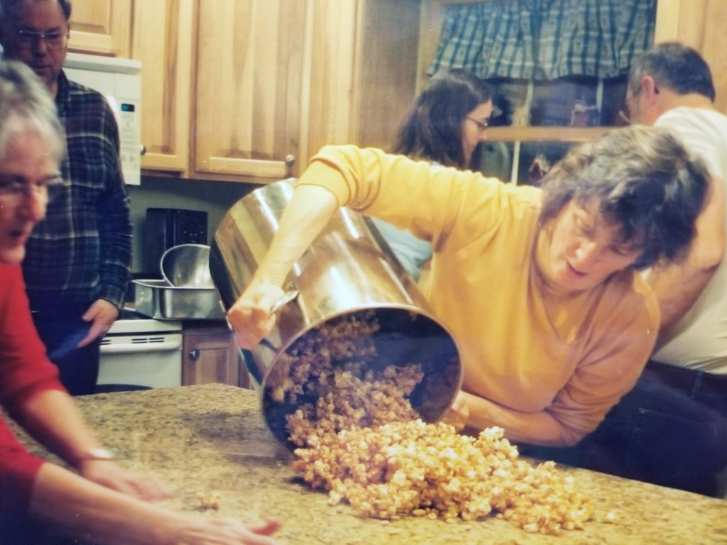 My dad (and all of us) loved making cracker jack—in fact we begged him to make it—but it always turned him into a bit of a captain barking out orders that we hastened to follow. Mom recalls how frantic she became hunting for the stirring paddle, because when you only use something once a year, you don’t tend to remember where it was/is stored.