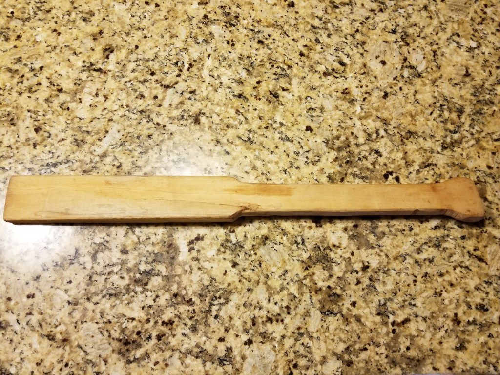 (My husband made a paddle of poplar wood which has worked well). Using potholders, another person should hold down the kettle so it stays flat on the floor while one continues the stirring-in process until all or most of the popcorn is well covered.
