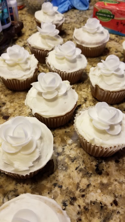 When I got back to our van after the ceremony, I could not find my glasses there. My middle daughter launched a search in the park. Praise be, my new son-in-law found them, one lens squished out of the frame which I popped back in. He won points for that one! And I looked again for the van’s key lob and found it in a small bag. I had no memory of placing it there. Wedding discombobulation, my middle daughter said, not dementia. Let’s hope so. I hurriedly passed out the wrapped gluten free cupcakes I’d made for folks to enjoy on their way home, or for supper. You have to have cake celebrating a wedding, right?