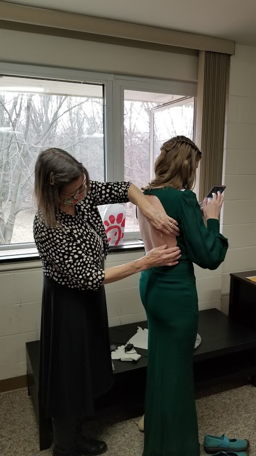 The bride enjoyed Chick fil A for her lunch and kept windows open for ventilation.