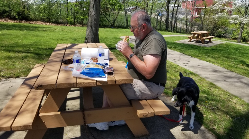 Enjoying a sunny lunch at a wayside park near the eastern Ohio line on I-70.