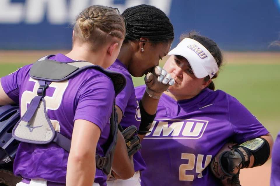 The games were hot, loud, and competitively, the best softball I’ve seen played anywhere (and many coaches/commentators agree about that). It was a thrill to watch the women on all the teams supporting each other so enthusiastically. And it really isn’t boring, when you study and watch the pitchers, coaches, catchers and in our case, a player holding down third base like it was a fortress. Our pitcher, Odicci Alexander, from a very small town in southern Virginia had wowed fans throughout the season. Then they started beating ranked teams as they eventually earned the opportunity to bat in the WWSN playoffs. Eight schools made it to that level and JMU players were able to defeat their first two opponents and go on to additional games.