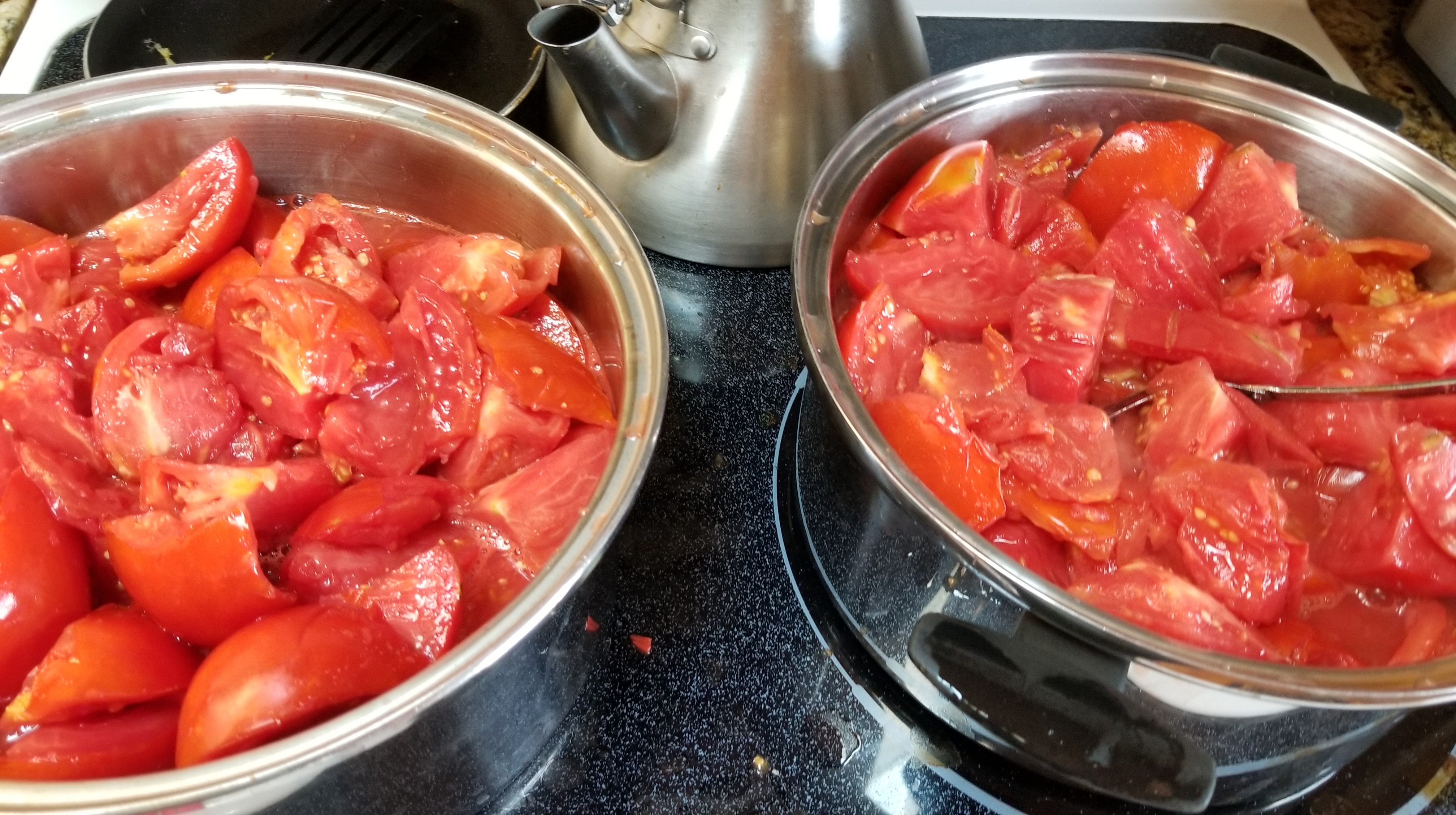 By the end of the day, the tomato jars have all pinged their joyful news that yes, they sealed just fine. My husband will have plenty of home canned juice to enjoy all winter.