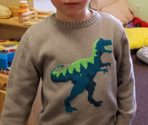Not one of my grandsons, by the way, but another kiddo at church proving that dinosaurs are very popular with this little generation.