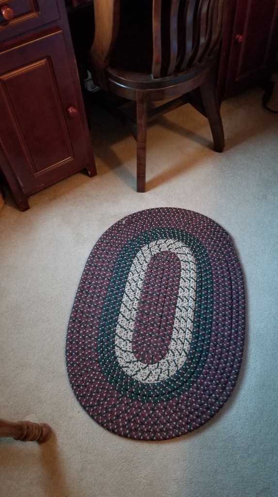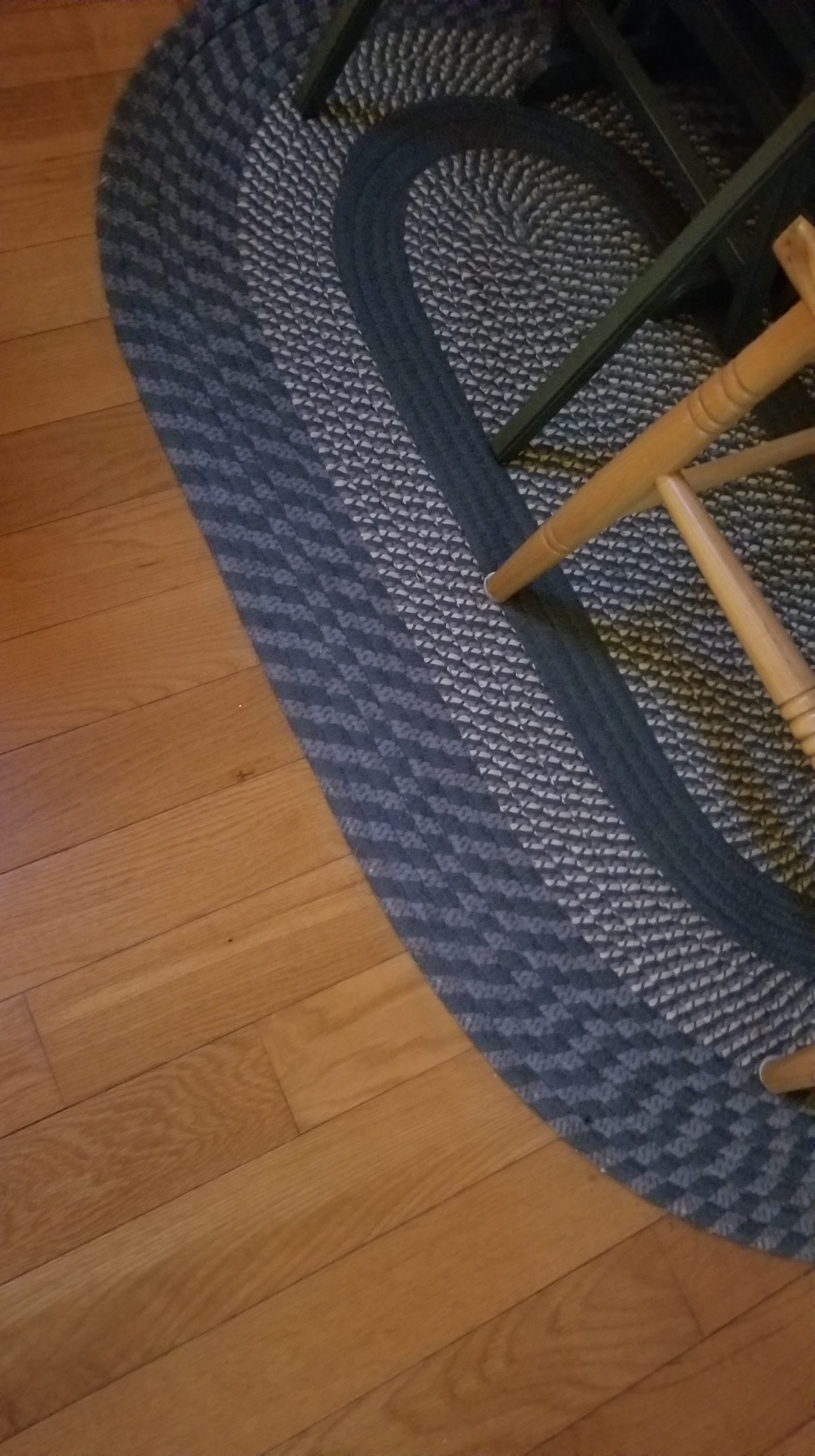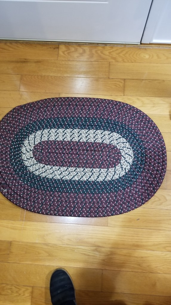 The braided rug that caught Edward’s eye, near our front door, which my husband never liked there because it tended to fray the weather stripping.