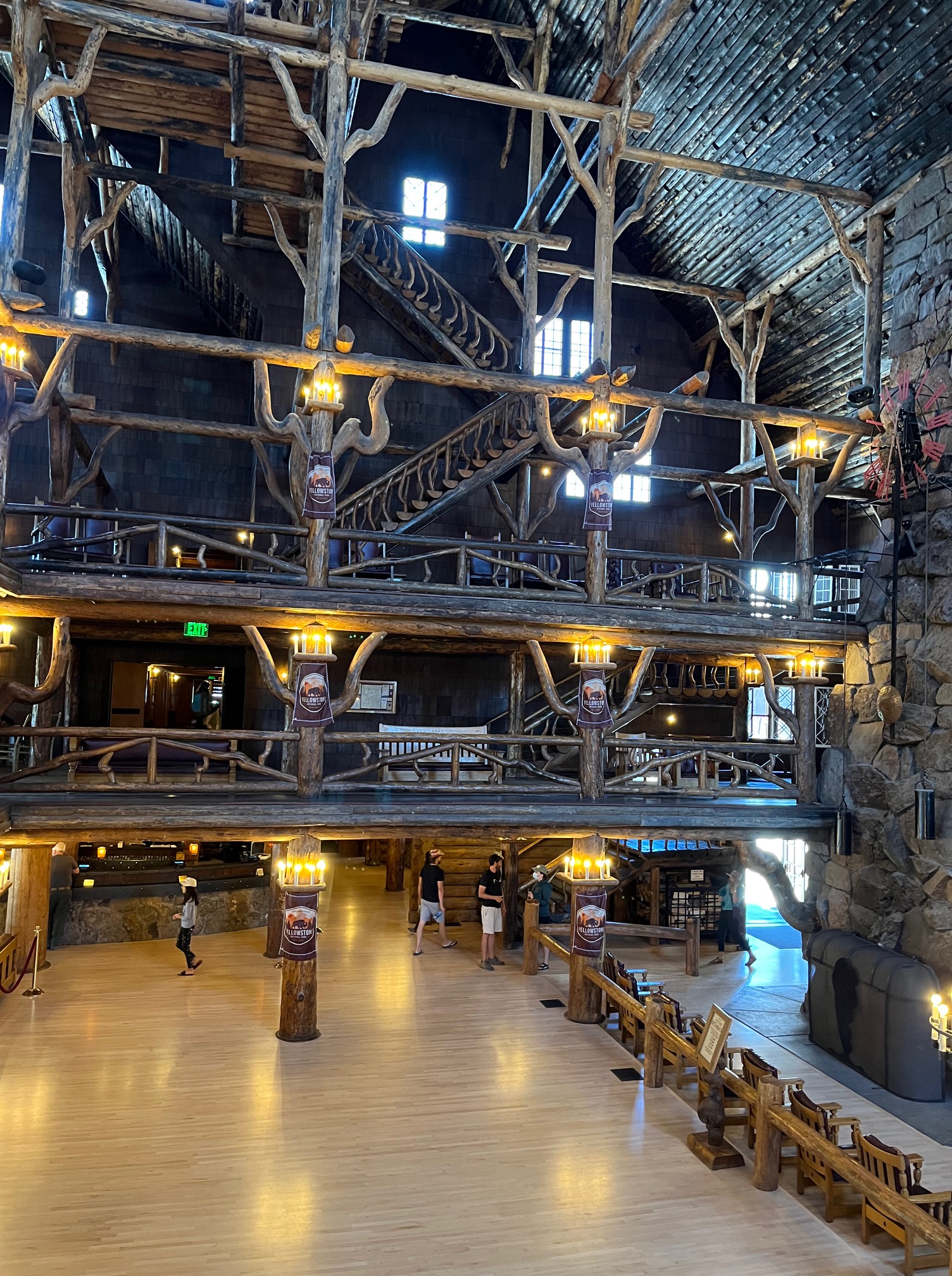 My favorite lodging however was in the Old Faithful Inn at Yellowstone that I had surveyed in awed silence as a 13-year-old, wishing so hard that we could stay in the Inn. But back then, we were camping in a small travel trailer. So my childhood wish finally came true many decades later–even if it meant going down a hall (like older dorms!) to go to the bathroom and shower. But most importantly for us as a couple, our time together gave us space to have conversations and share thoughts that we rarely take time for at home.
