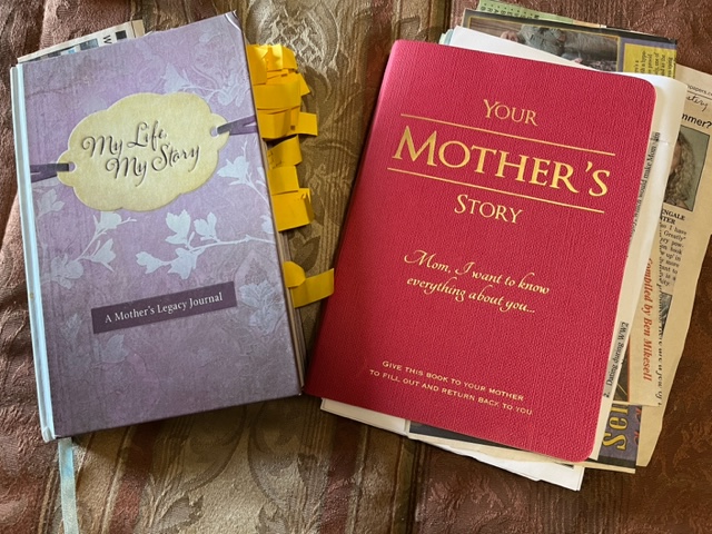 My sister had given her some journals with prompts for Mom to respond to and write about various aspects of her life, which I’m using for this family memoir (which will include Dad too).