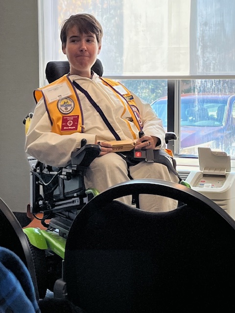Shea shared parts of her life story so far (she’s 29) at our Lions Club fall conference in Fredericksburg Va. Her third service dog matches her for his remarkable job as a trained and loving companion. Her second service dog helped her graduate from the University of Virginia (even crossing the stage with her if I understand correctly, a school which is no whiz to get into, founded by Thomas Jefferson in 1819). She also managed to live on the university campus without special helpers, except for her dog. She is an author of numerous books and began writing real publishable books at the age of 13, starring her first service dog Mercer.