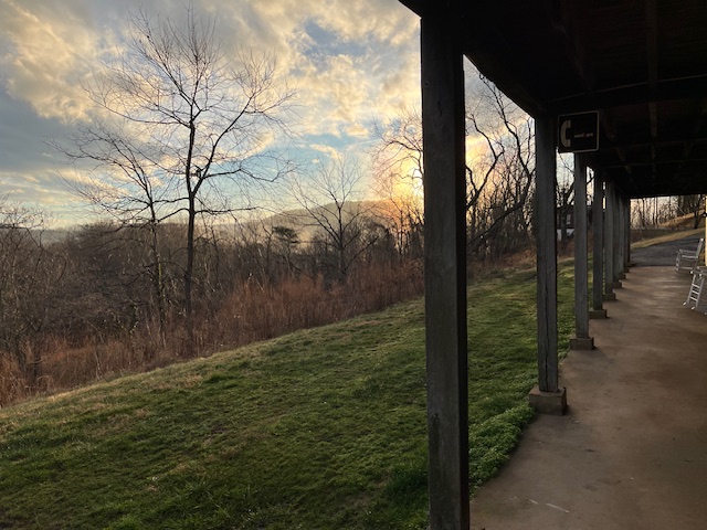 So our getaway location was an 1800 acre farm with the family name “Graves Mountain Farm” in operation since 1850s, (families settled there earlier in the 1740s, an interesting history!). In addition to raising cows, chickens, horses, sheep, apples, and peaches, it offers cabins and lodges, a swimming pool, volleyball court, horseshoe pit, a babbling brook with fishing, hiking, biking, local bands and singalongs, fireplaces….and plenty of great food options in season. Numerous family members work right there on the farm. The Graves Market and Deli is ready to fix fresh breakfast sandwiches and other items for lunch etc. Most of the year, meals are served in a large restaurant there, but not in the winter, which reopens later in March. So for supper that night we drove to the town of Madison, about 15 minutes away, where we enjoyed a delicious supper at Miranda’s Restaurant.