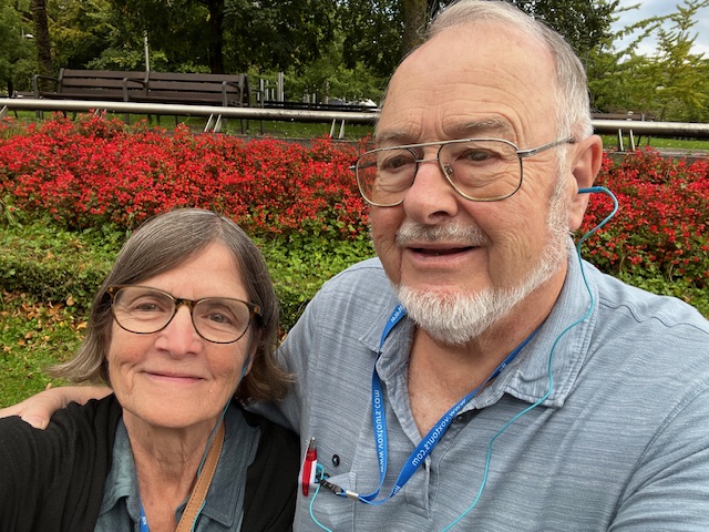 Here are “Whispers” (blue) attached to our ears to facilitate hearing our guide without having to hear five other guides in various places.