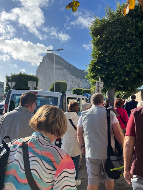But my biggest thrill of this trip was being able to visit Gibraltar, which is near Seville. I had no idea of the size of the rock or the views we would be able to see of Morocco and Africa from Gibraltar. The weather was perfect that day. We had a great and funny guide who introduced us to the Barbary macaques, which are monkeys, and the history of Gibraltar goes back and forth from Europe (and England) to Spanish control and back to England. I’m thinking that my mother used to say something like “that’s as hard as the Rock of Gibraltar” when she was spouting off about something.