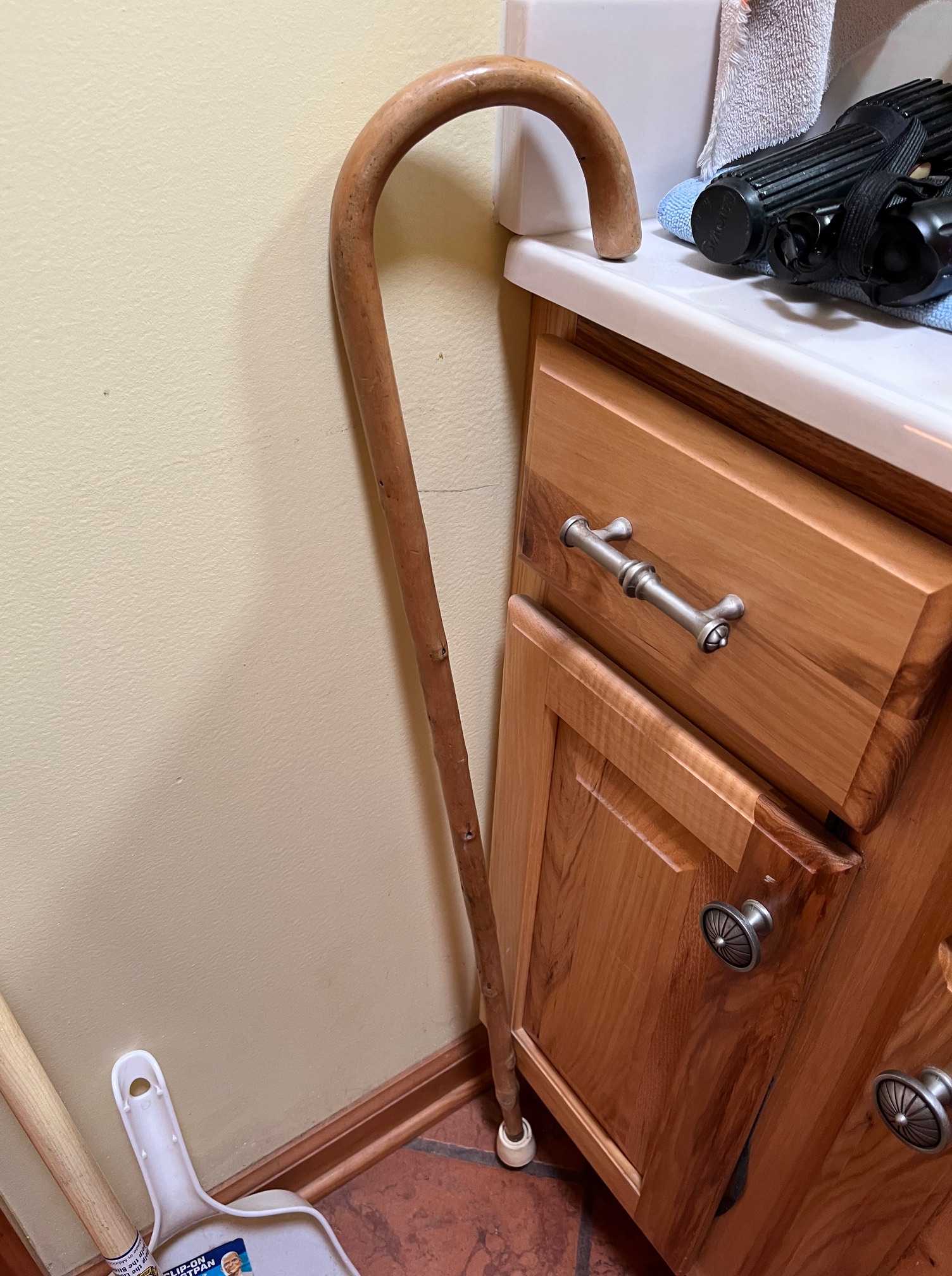 And I’m sitting here weeping the morning after her service, knowing that Joanie knew things we didn’t know. She had proclaimed that there would be no wheelchairs in heaven, of that she was sure! That made me cry because that was the same thing my Dad had often said in his final years leading up to his passing. Not regarding wheelchairs, which he had to use for awhile, but then he graduated to just a cane. But eventually he was longing for the day when he would no longer even have to use his cane, the one that I now keep in our bathroom. I grabbed for my tissues again.