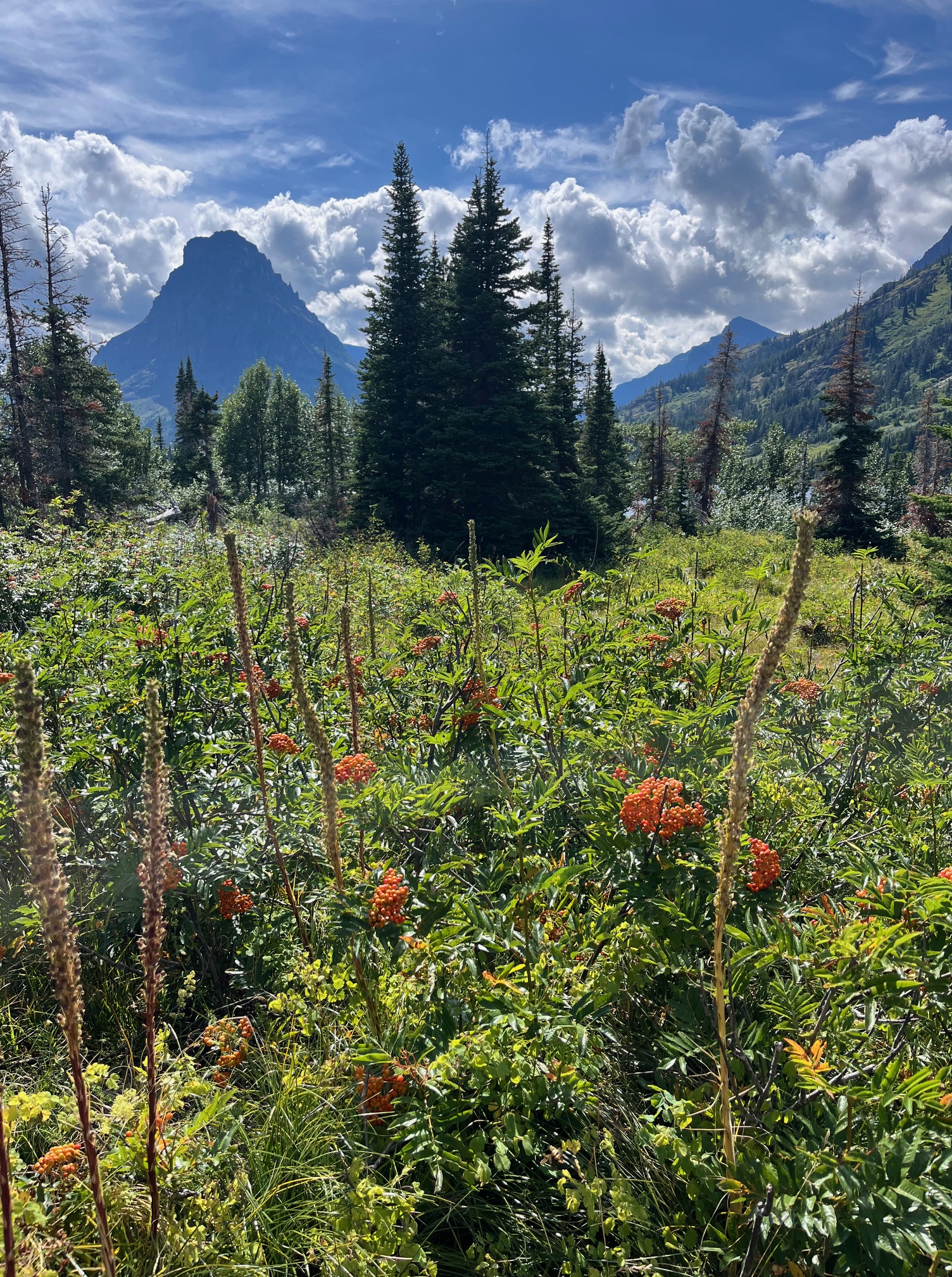 History: we siblings all remember Dad telling many stories of his assignments and challenge during World War 2 at Glacier Park, sawing lumber, cleaning up grounds, trying out for smoke jumping (he was not selected), fishing, spotting bear, bighorn and goats. He, having quit school after 8th grade (like many other farm boys of the time) also learned from his colleagues and visiting speakers and leaders at the camp, all serving as conscientious objectors. (Fittingly, the northern edge of the park was founded as the International Peace Park in 1932 by the Canadian Parliament and U.S. President Roosevelt’s proclamation.)